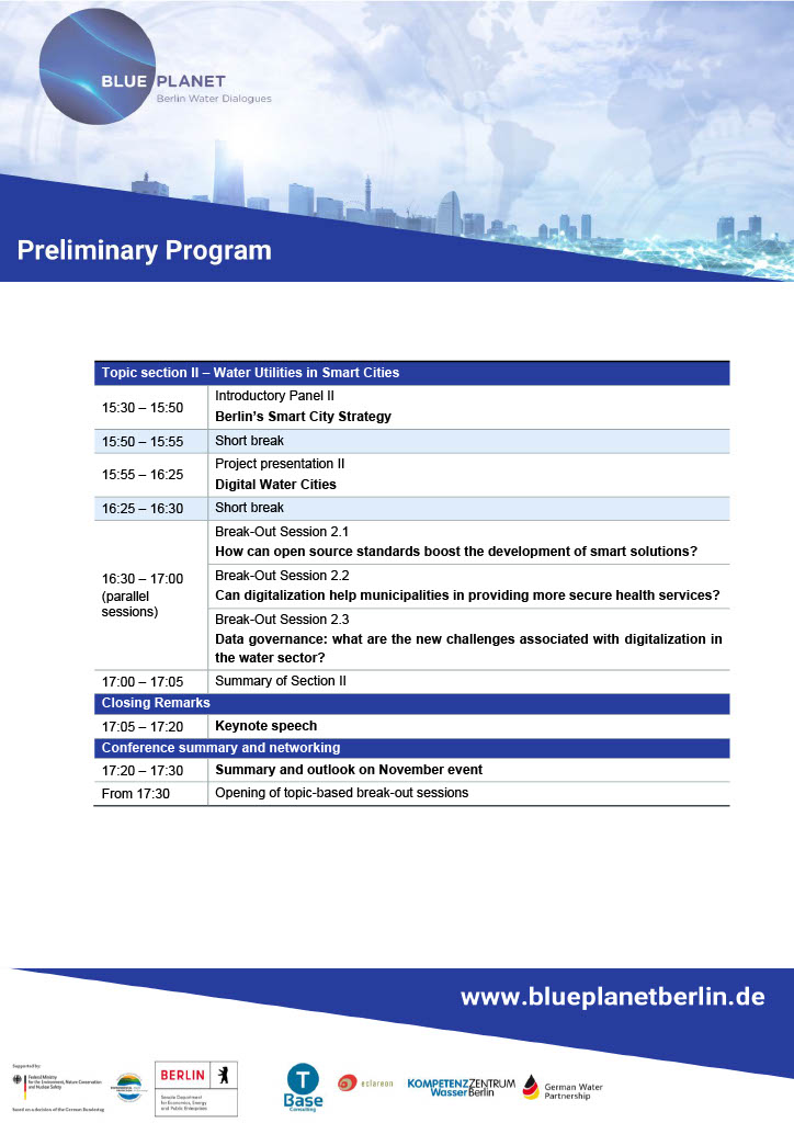 BLUE PLANET Berlin Water Dialogues is an established brand of events on the international water sector.