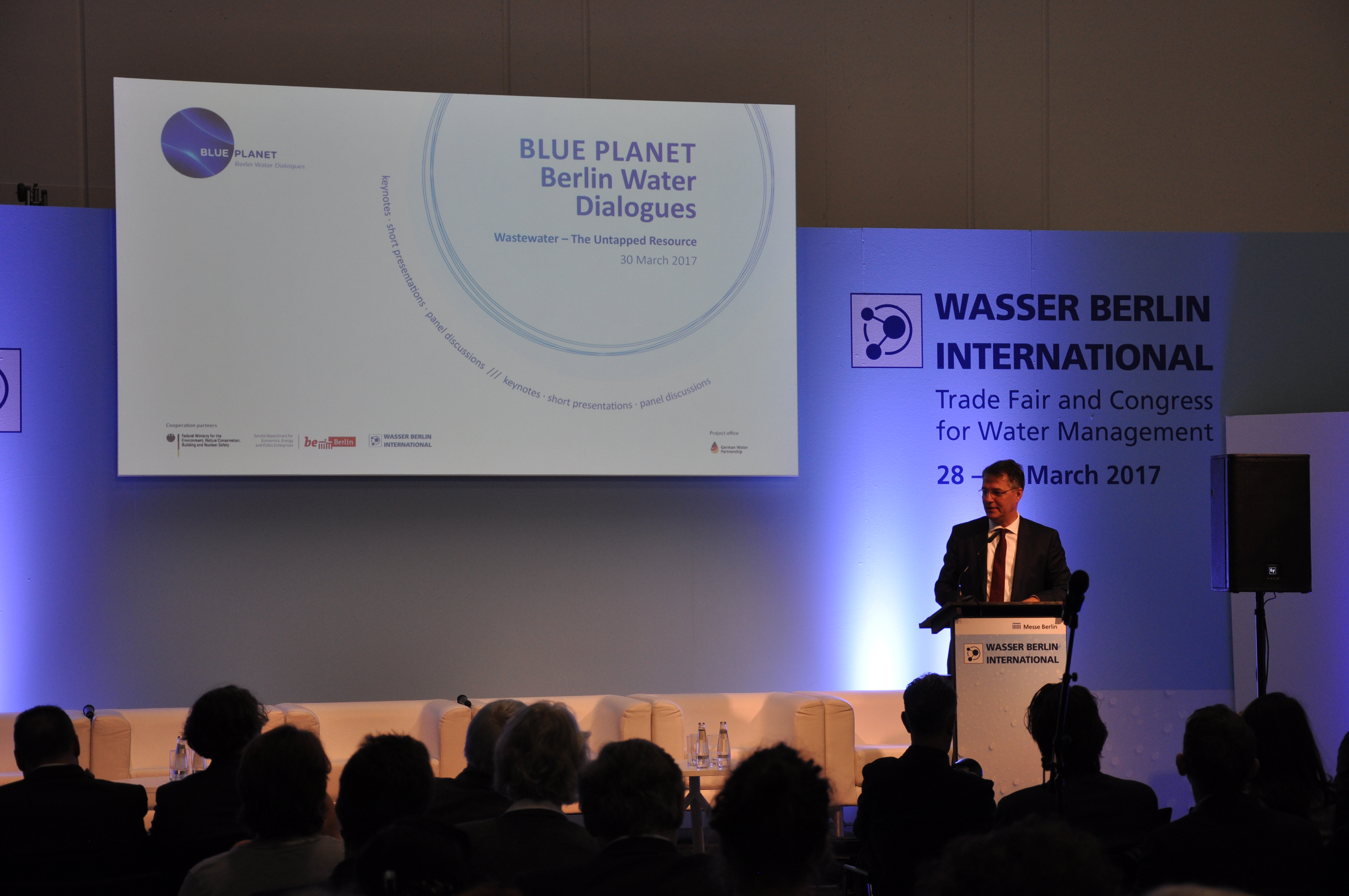 This is the conclusion of the BLUE PLANET Berlin Water Dialogues on March 30, 2017. The political forum for water and waste water was part of the framework programme of WASSER BERLIN INTERNATIONAL 2017. The strong theme “Wastewater – the Untapped Resource”, which was also the motto of this year’s World Water Day, hit the heart and was highly popular with all those involved: around 120 participants came to the expert forum to learn more about and discuss the increasingly important topic. Both the contributions of the high-caliber speakers and the subsequent panel discussion showed without exception that the paradigm shift in the management of waste as a potential source of resources has already taken place in the water sector.
